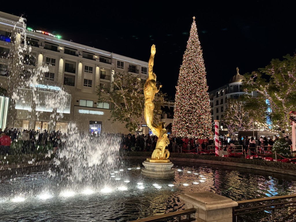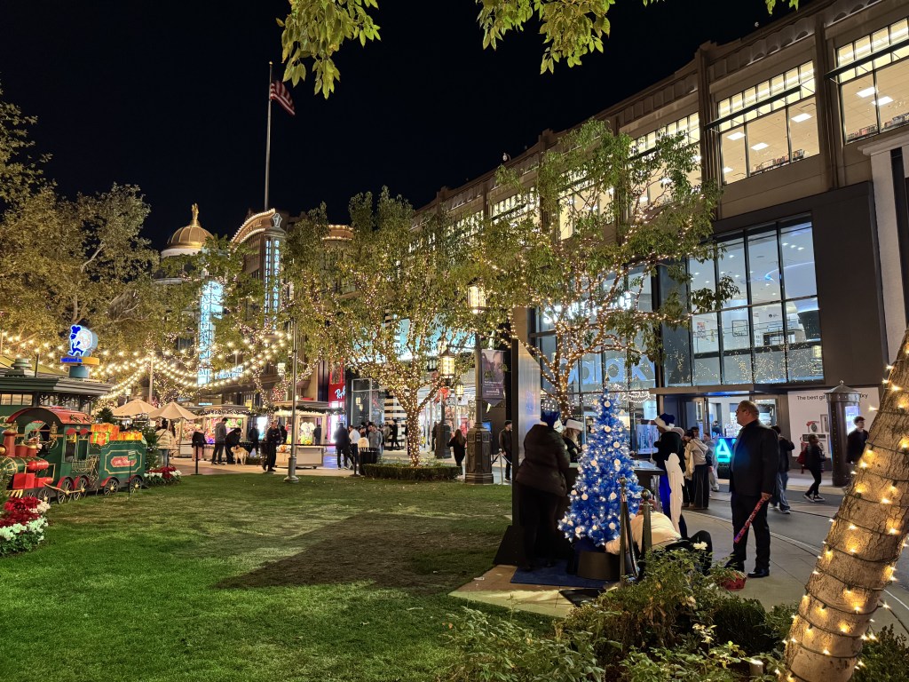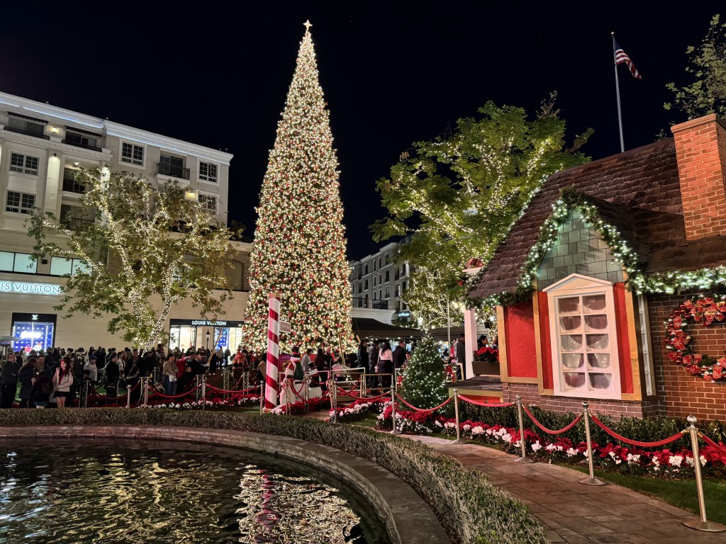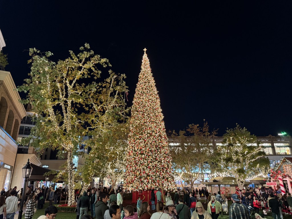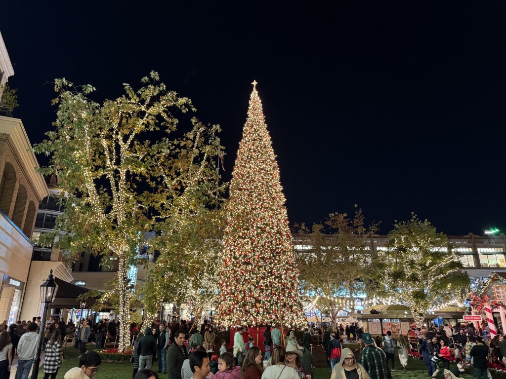 It was a quintessential December Saturday evening in Southern California, where the temperature lingered in the low 50s, a refreshing chill in the air under a blanket of cloud cover. The melodic strains of Christmas music floated through the atmosphere, enhancing the environment’s joyous spirit. As shoppers moved from store to store, laughter and cheerful chatter filled the air, making the outdoor space feel like a scene straight out of a classic holiday movie.